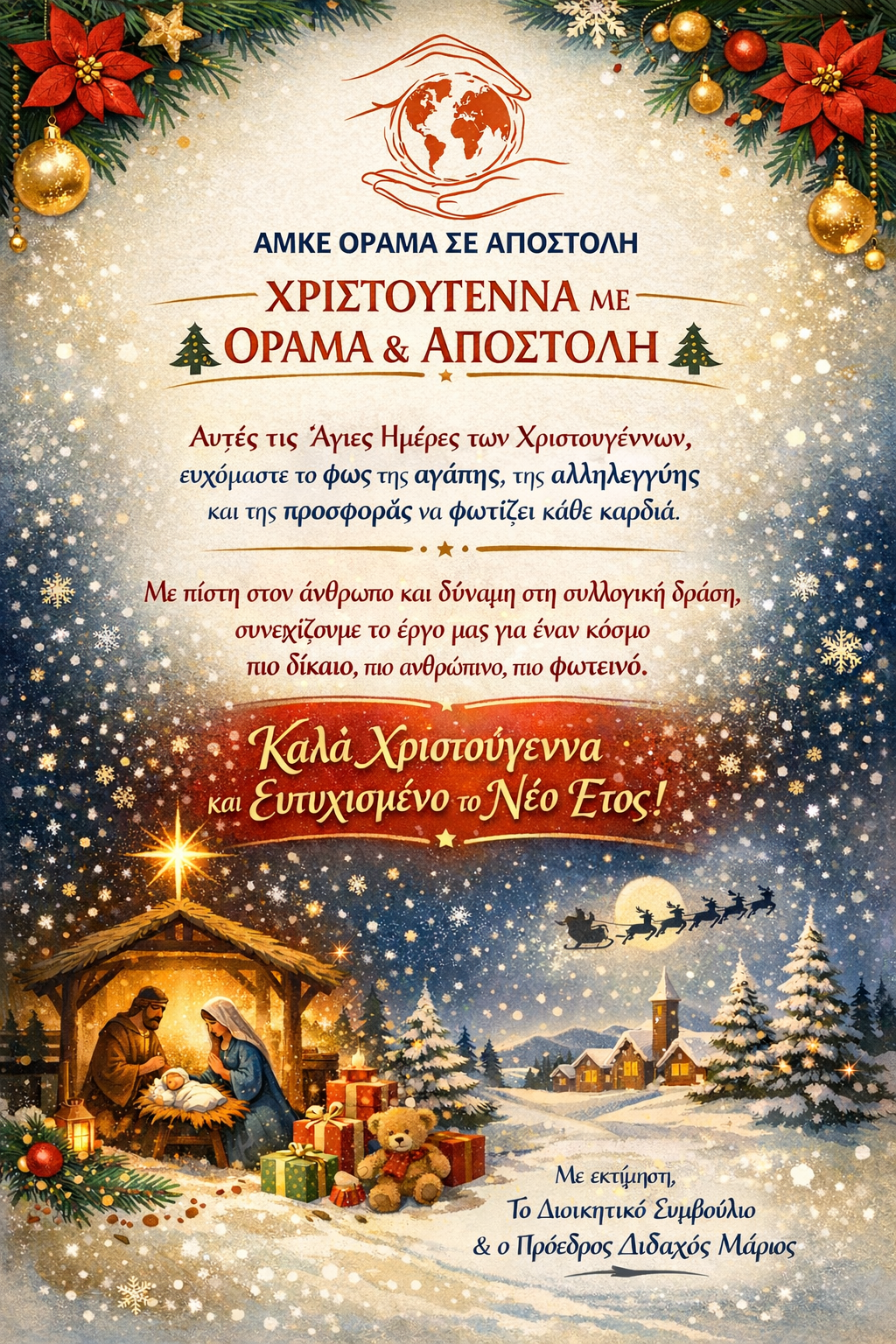 Η Α.Μ.Κ.Ε «ΟΡΑΜΑ ΣΕ ΑΠΟΣΤΟΛΗ» σας εύχεται Χρόνια Πολλά